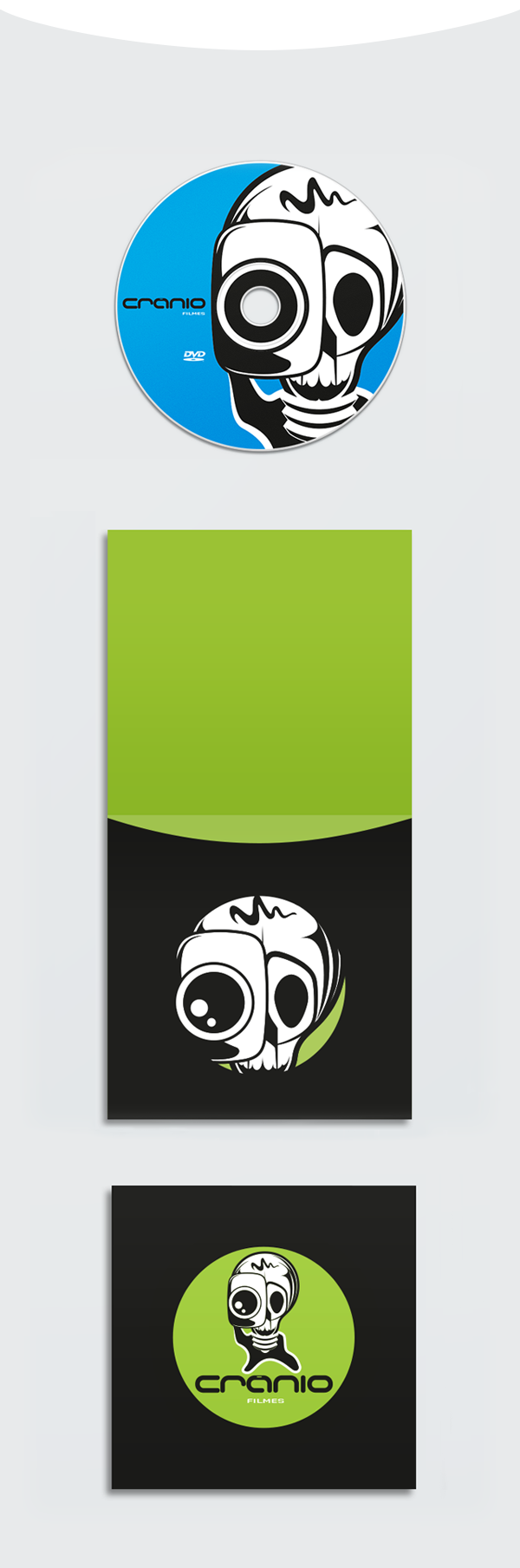 Criação de Marca e conceito gráfico para Crânio Filmes, produtora paulista de projetos audiovisuais.