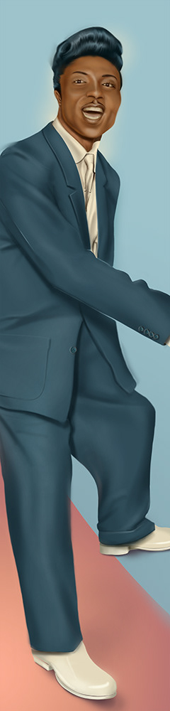 Série de ilustrações feitas para estabelecimento com temática anos 50, retratando músicos norte-americanos do rock. Total de nove artes impressas e instaladas sobre parede. Tamanho original de cada peça: 60 cm x 250 cm.